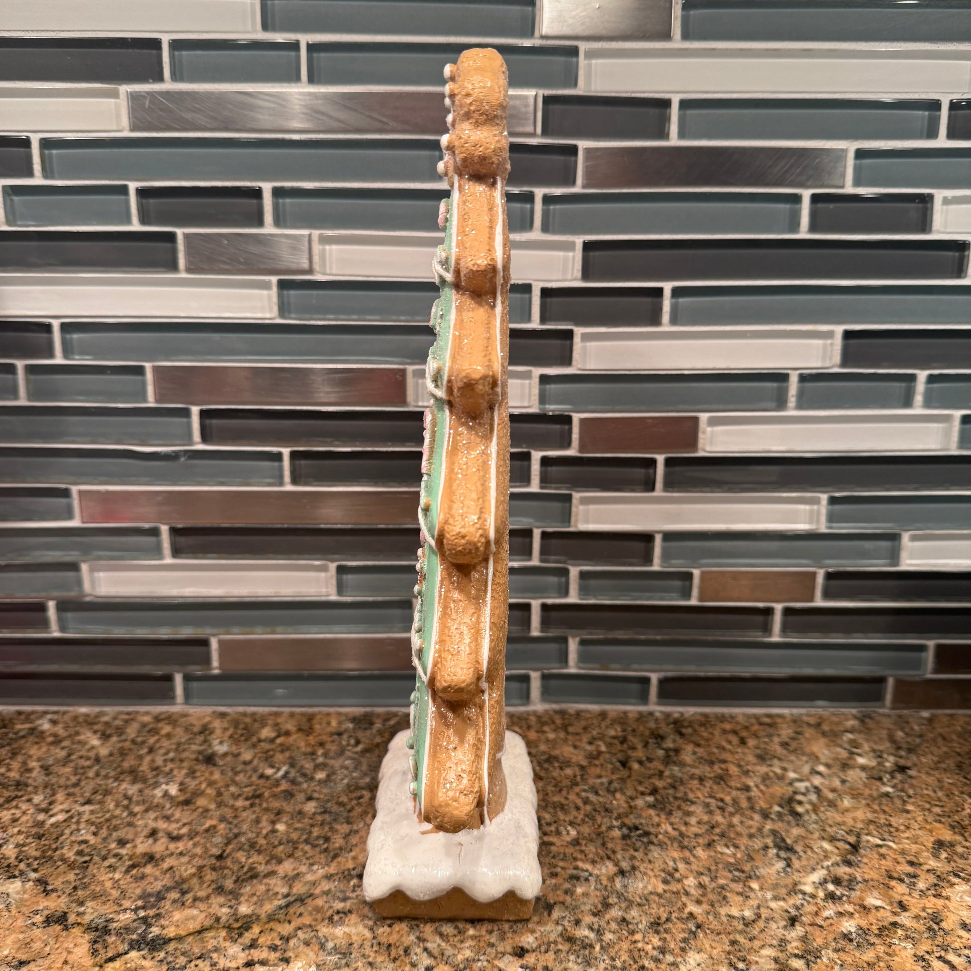 Discover this expertly crafted resin gingerbread cookie tree, rendered in calming mint green for a refreshing take on holiday décor. With dimensions of 9.99 inches in height, 5 inches in width, and 2.15 inches in depth, this piece fits seamlessly into curated displays without demanding excessive space. The resin construction faithfully reproduces the textured surface and dimensional character of artisanal gingerbread, while the unexpected color palette appeals to those seeking sophistication beyond conventional seasonal aesthetics. Ideal for collectors and design-conscious individuals who appreciate quality craftsmanship and understated elegance in their decorative collections.